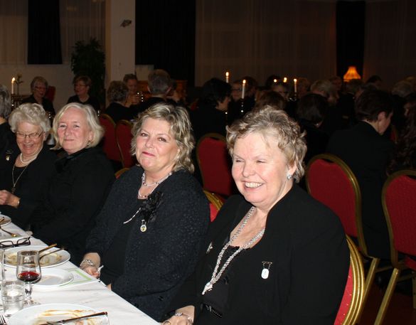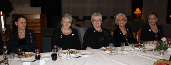 Etter at Festlogen var avsluttet sang Odd Fellowkoret for gjester og søstre før vi satte oss til bords til Festbankett. Str. Mary A. Raa innledet med jubileets prolog som hun selv hadde ført i penn. Hun hadde mange gode og slående poeng – til glede for alle tilhørerne. CM Gerd Misje Lund ledet taffelet. På menyen stod: Asparges med Seranoskinke, Reinsdyrstek med tilbehør og Karamellpudding med Cognackrem med deilige viner som følge.