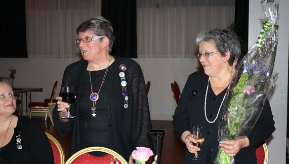 Stemningen var høy ved bordet og det var tydelig at alle koste seg. Med flotte kelnere i form av brødre fra Odd Fellowlogene i Bergen ble ikke stemningen mindre. Under banketten holdt Dep. SS Tove Aalborg tale og overrakte blomster og en vakker vase i kunstglass som gave. Fra Rebekkalogene og Leirene i Distrikt 3 fikk vi en pengegave øremerket innkjøp av regalier til søstrene. Logens søstre ga også gaver, pengegaver øremerket søsterfondet og 2 nye embedsmannsregalier.