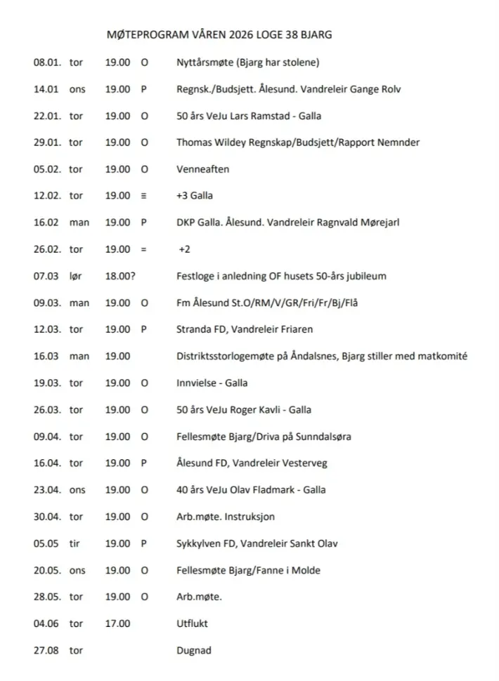 Møteplan våren 2026