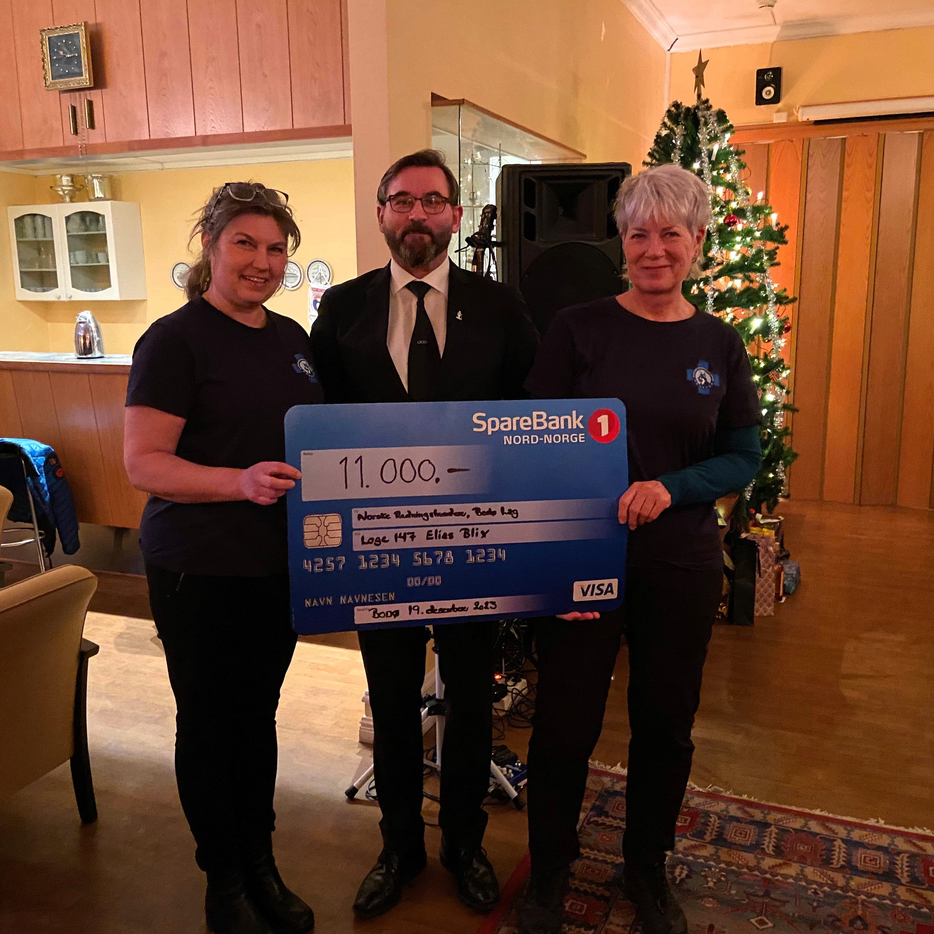 Odd Fellow loge nr. 147 Elias Blix hadde på sitt siste møte før jul gleden av å kunne overrekke et bidrag fra logen til Bodø lag av Norske redningshunder på kr. 11.000.-