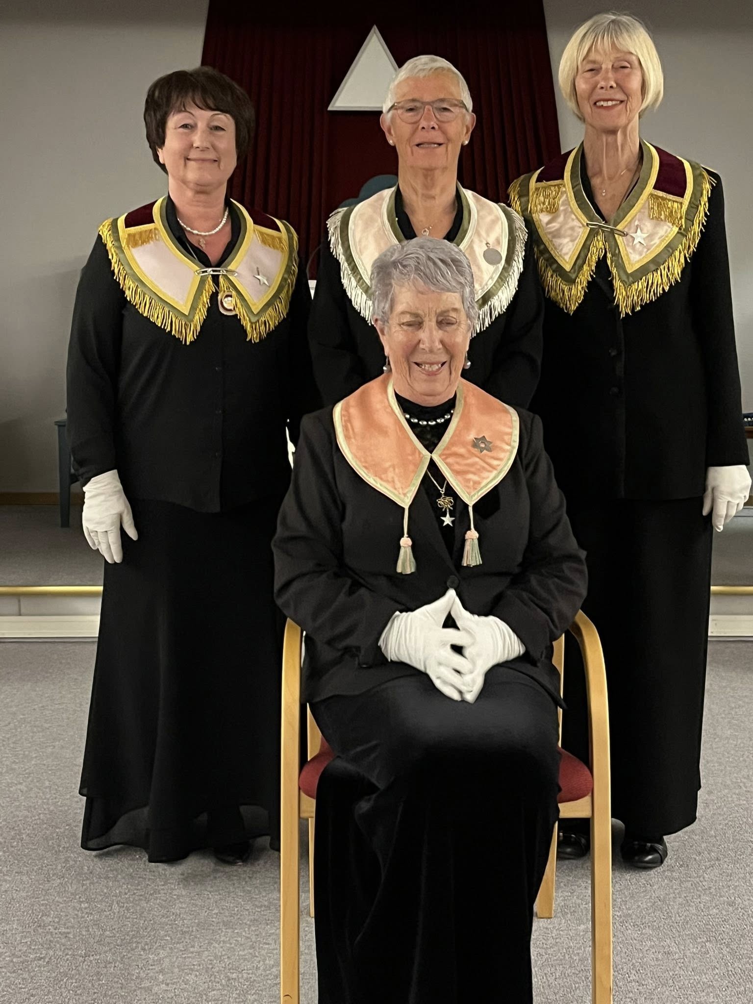 Fra venstre: Distrikts stor sire Anna Tominska, Overmester Evelyn Liseth, Stor representant Ingunn Hunnes,