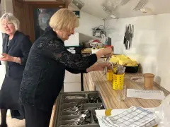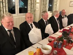 Når vi kom opp i spisesalen var det dekket et et flott pyntet julebord og hvor vi 27 frem møtte brødre fikk servert juletallerken av våre søstre fra Konvall.