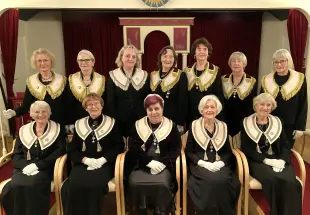 Storrepresentant Ann Karin Tenggren foretok den høytidelige tildelingen med sine Storembedsmenn Fung. Stor Marsjall Eks Storrepr. Torill Sletteng, Fung. Dep. Stor Sire Eks DSS Anne Harriet Kvalheim, Fung. Stor Kapellan Eks DSS Gunvor Moe Winther og Fung. Stor Skm. Eks Storrepr. Kari Berg.