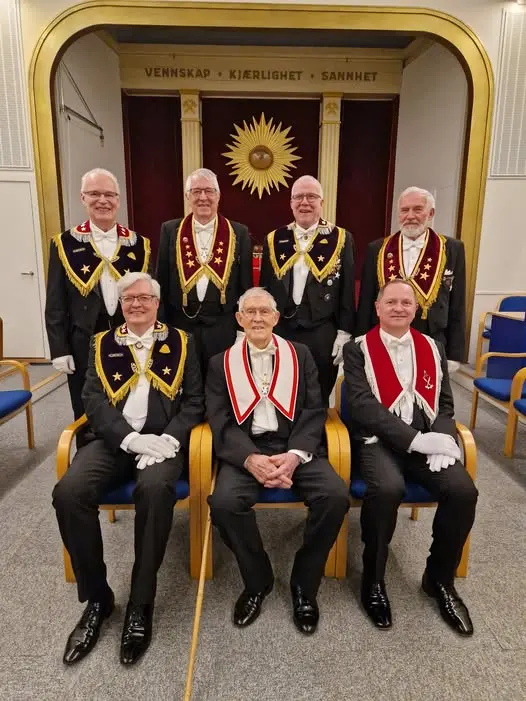 DSS Leif Gunnar Hansen med sine storembedsmenn gjennomførte en høytidelig og stilfull seremoni i logesalen.