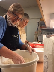 Søstre la mange timers forarbeid med mye fint håndarbeid og lefsebakking (se bilde) og ikke minst med smørdbrød laging samt kake bakking. Flotte strikkegensere og duker, sykler, vesker, stoler mm., hadde vi fått, alså mange fantasifulle og nyttige gevinster. Det var også mange fine innkjøpte gevinster som var gitt av brødrene og søstre på åresalg og bøker.