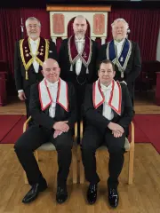 Bak (f.v): UM Kjell Arne Solem, OM Arnt Johan Hanssen, Fung. Eks.OM Dagfinn Lind