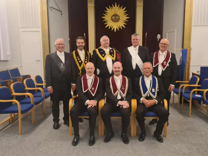 Bak fra venstre Skattmester Mads Evald Joakimsen, Sekretær Kim Håvard Larsen, CM Øyvind Guldhaugen og KAP Frank Røkenes.