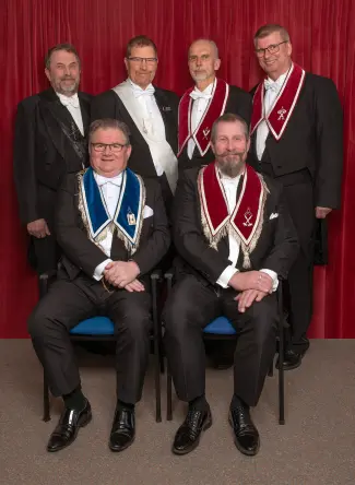Ceremonimester Gunnar Jørgensen, Kapellan Kjell Erik Myrhaug, Sekretær Ove Nonstad, Skattmester Thomas Acevedo Rosset,