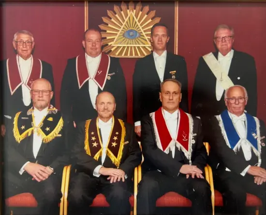 Skm. Arne Rundtom, Sekr. Giert Flock, Ceremonimester Carsten Poulsen og Kap. Harold Misund.