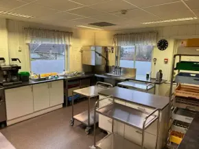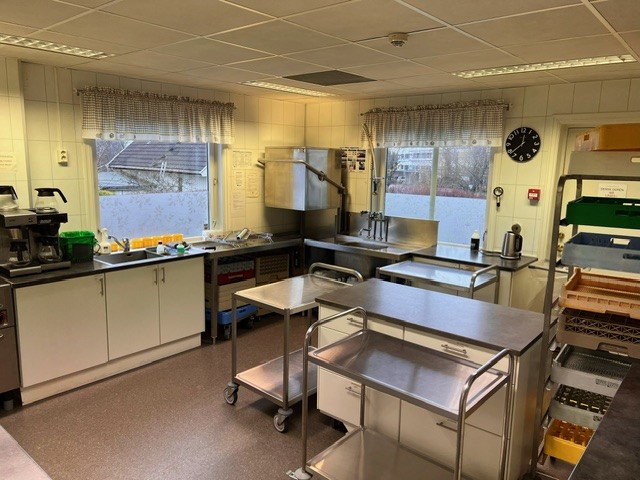 Spisesalen har kapasitet til opptil 110 gjester, og kjøkkenet er komplett utstyrt for å dekke opp til alle.