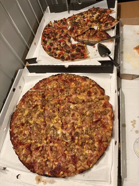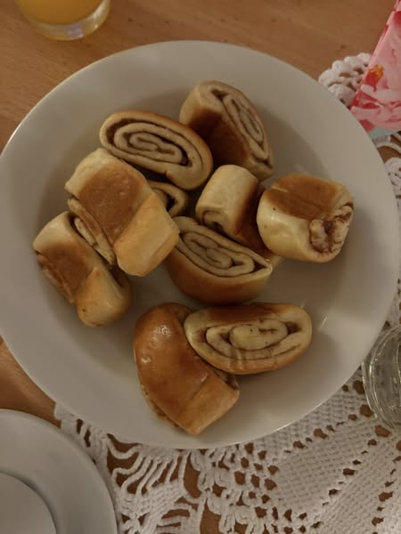 I dag var vi 32 søstre i logen og fikk servert deilig pizza fra kaikanten og kanel snurrer attpå