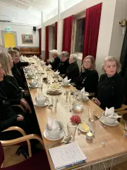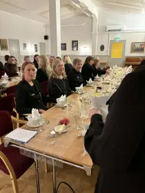 Sølvi startet med å ønske dem velkommen igjen og fortalte litt om hvorfor vi var kledd helt likt. Logeantrekket er for at vi alle skal være lik og det ikke er noe forskjell på hvor du kommer fra, status eller yrke. Vidrere fortalte OM Merethe om vennskap og litt om historien til Odd Fellow. Sølvi fortalte også at vi er 5 loger i Finnmark men finnes i hele Norge og verden, og vi er velkommen i alle. OM Merethe fortalte om Odd Fellow sine formål som gode etiske holdninger og møte andre mennesker med åpent sinn.