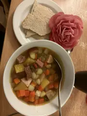 Etter dette gikk vi ned å fikk kjøttsuppe med flatbrød og kaker til dessert. Å MASSE premier var det til lotteriet.